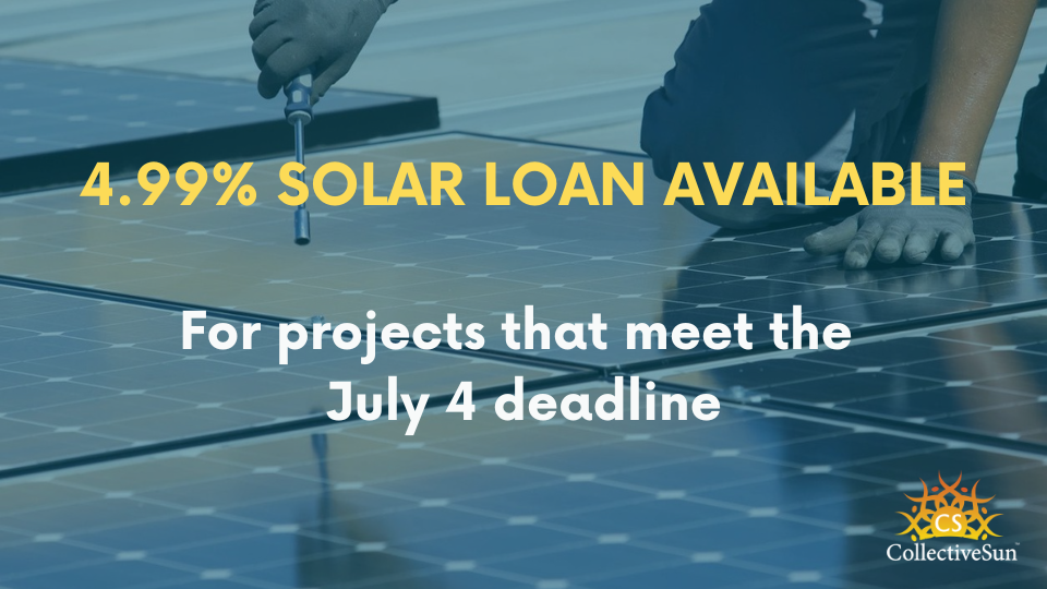 CollectiveSun recently received additional funding for our successful 4.99% loan for qualifying solar and solar + storage nonprofit projects. Time is of the essence with the looming safe harbor deadline on July 4 (scroll down to learn more), and funds are limited, so please reach out immediately if you have a qualifying project. If it is easier, feel free to schedule time with Matt Brennan using this link.